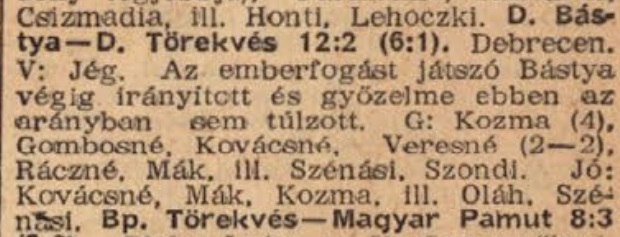 | 1977.04.24. | NB-II. | DVSC - Debreceni Kinizsi | 15 - 9 |