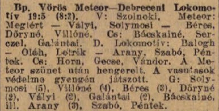 | Arany Éva (Oláhné) átlövő | 3 | |||||