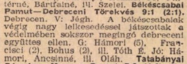 | Statisztika: | Ez a 121. tétmeccs, a 22. nagypályás és a 6. Békéscsaba elleni mérkõzés. |